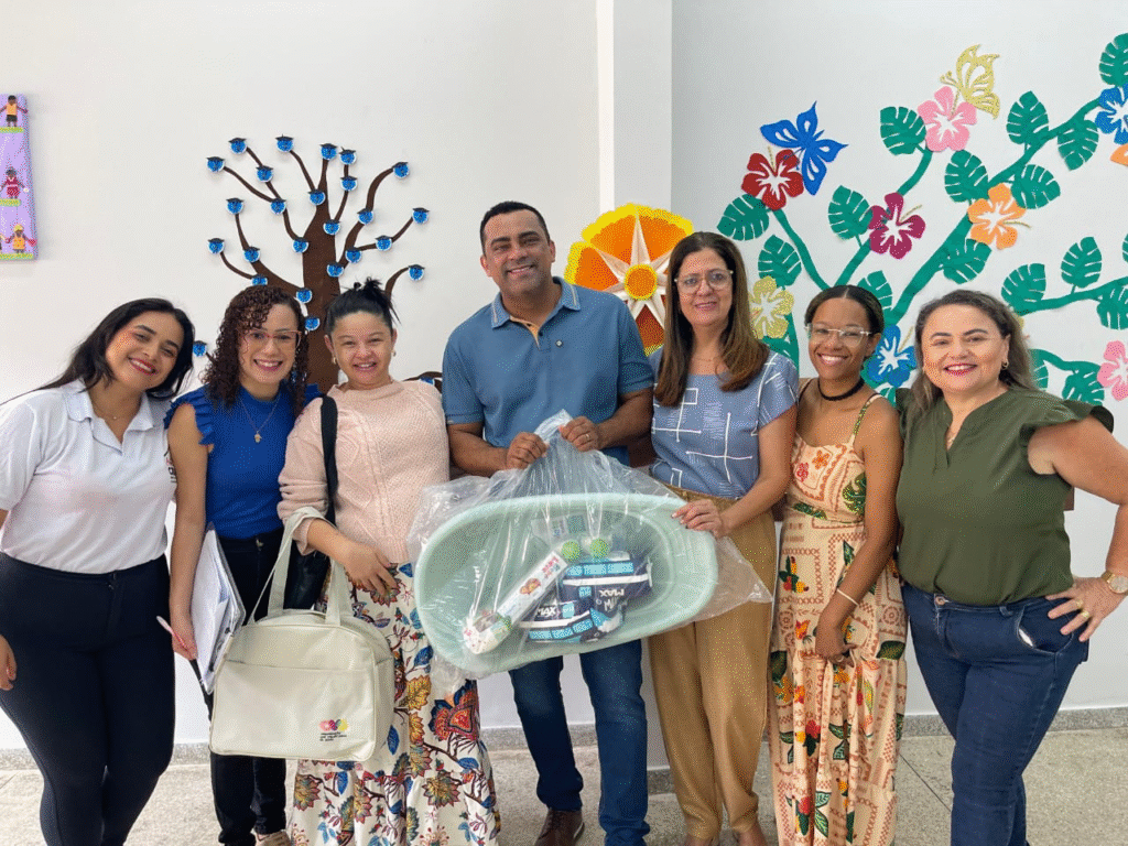 A cerimônia de entrega aconteceu no CRAS CEU e contou com a presença do secretário municipal de Assistência Social, Edér Nunes, da superintendente de Assistência Social, Maria Fábia, e da psicóloga Josymara, reforçando o compromisso da gestão com o cuidado humanizado e o acolhimento às futuras mamães.