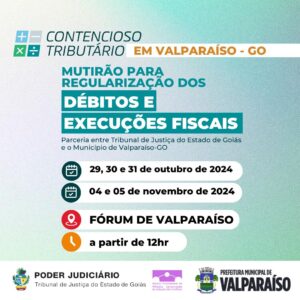 MUTIRÃO PARA REGULARIZAÇÃO DOS DÉBITOS E EXECUÇÕES FISCAIS COMEÇA DIA 29 DE OUTUBRO EM VALPARAÍSO DE GOIÁS 15 de outubro de 2024