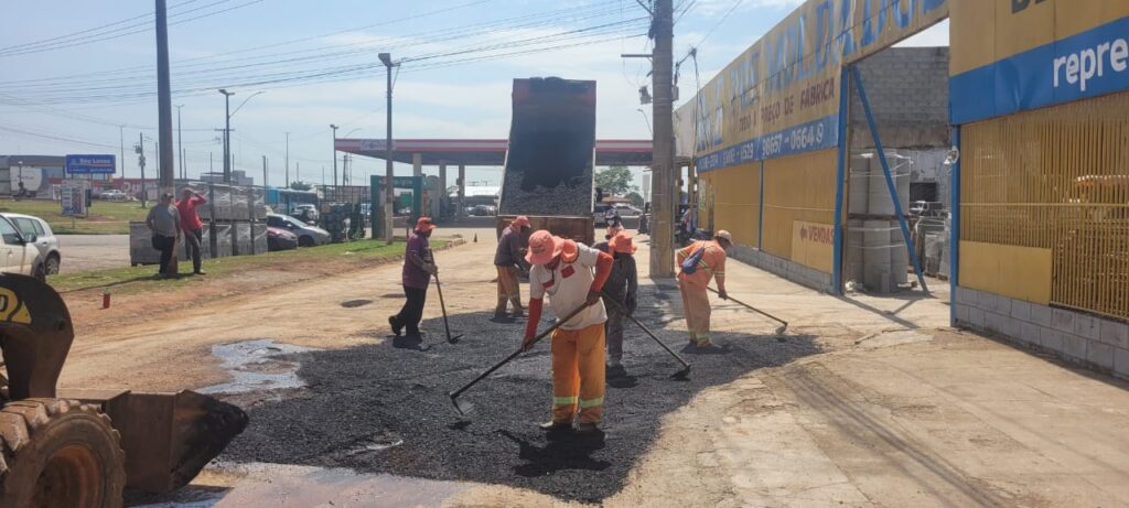 A Prefeitura Municipal de Águas Lindas de Goiás deu continuidade, nesta quarta-feira (16), ao cronograma de ações voltadas à melhoria da mobilidade urbana no município. Sob a gestão do prefeito Dr. Lucas Antonietti, as equipes da Secretaria Municipal de Infraestrutura e Obras, coordenadas pelo secretário Everaldo Veículos, realizaram a aplicação de massa asfáltica em importantes vias do Setor 10 e nas imediações do Shopping e da Feira Central.