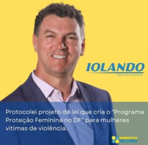 Deputado Iolando protocola projeto de Lei que cria o “Programa Proteção feminina no DF” para mulheres vítimas de violência. 17 de março de 2023