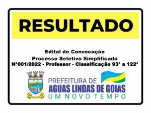 Confira o Edital de Convocação – Processo Seletivo Simplificado – N°001/2022 – Professor – Classificação 93° a 122° 17 de março de 2023