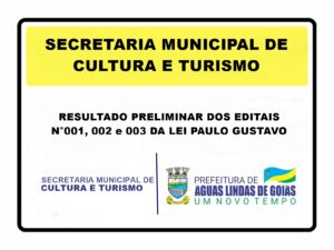 A Prefeitura Municipal de Águas Lindas de Goiás, por meio da Secretaria Municipal de Cultura e Turismo, torna público o resultado FINAL dos Editais Nº001, 002 e 003 da Lei Paulo Gustavo 22 de novembro de 2023