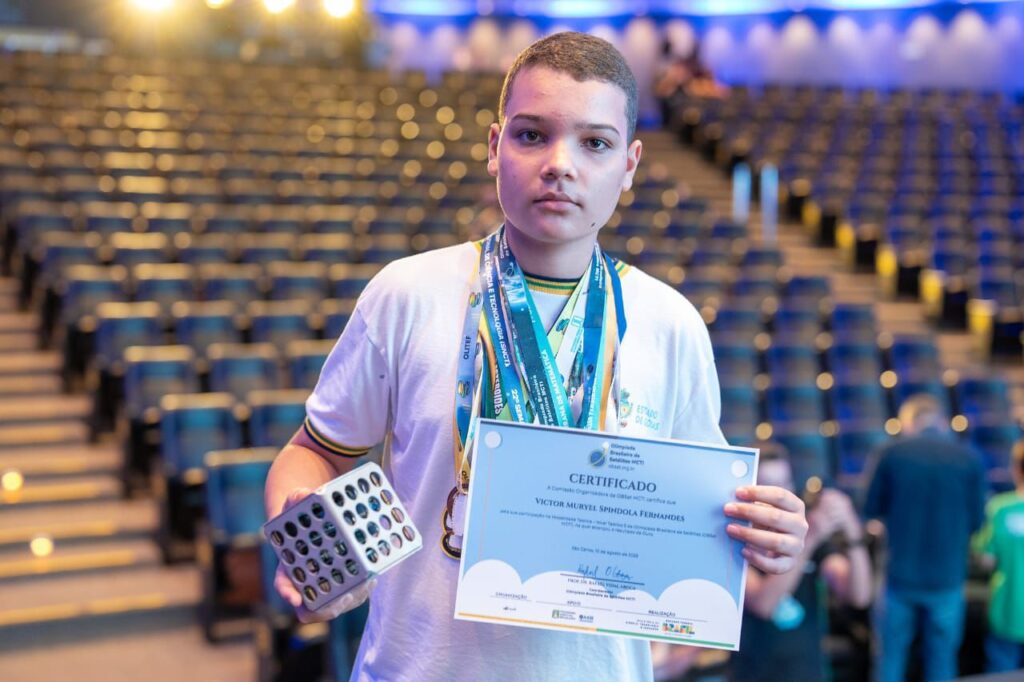 Outro destaque foi o estudante Victor Muryel Spíndola Fernandes, do 9º ano, que conquistou medalha de ouro na etapa teórica da Olimpíada Brasileira de Satélites (OBSat). Na categoria NT5, apenas 14 medalhas de ouro foram concedidas em todo o país — e Victor foi o único estudante de escola pública de Goiás a alcançar o feito.