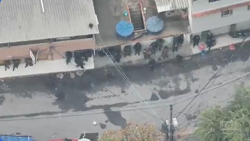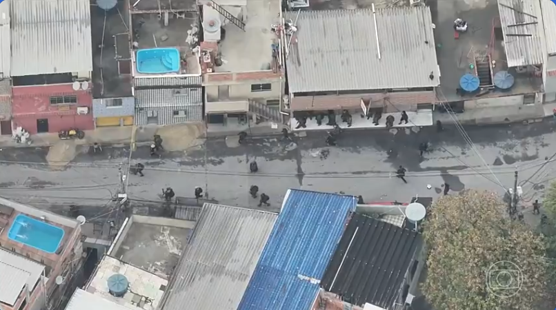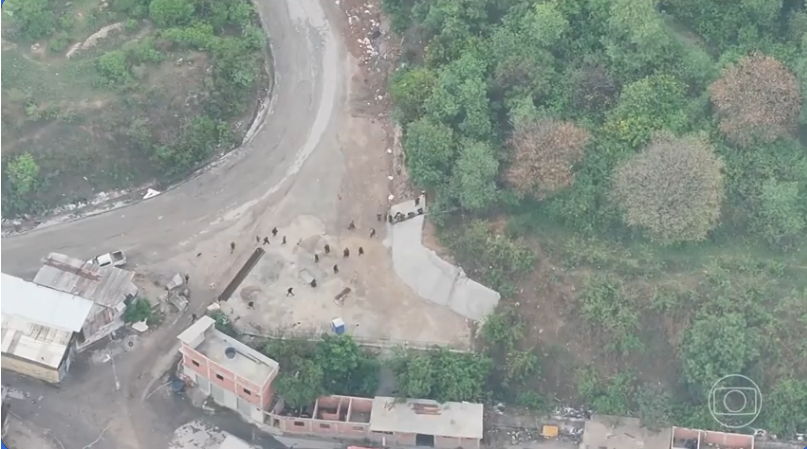 Imagens registradas durante a ação mostram criminosos fortemente armados reunidos em pontos estratégicos do alto da comunidade, com parte deles usando roupas camufladas e uniformes semelhantes aos das polícias, uma tática que, segundo investigadores, dificulta a identificação e facilita a mobilidade entre becos e áreas de mata.